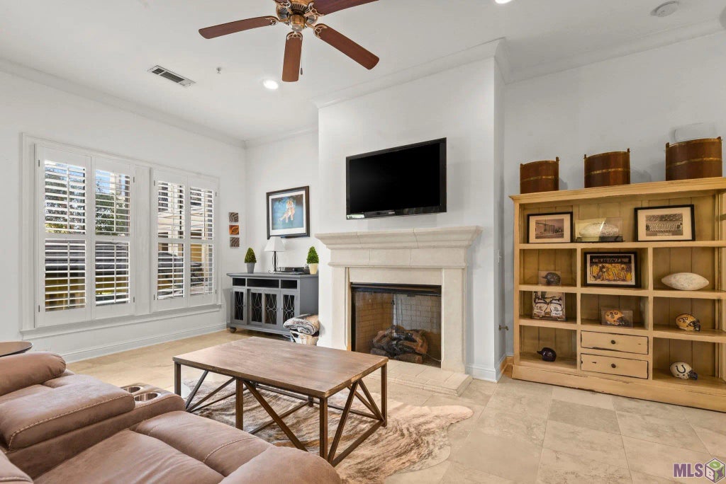 Walking distance to LSU and directly across from the Lakes, this luxury condo offers the ideal blend of comfort, style, and convenience. Inside, you’ll find granite countertops, stainless steel appliances, travertine floors, and an open living area accented with plantation shutters and a cozy gas fireplace. The two bedrooms and two full baths are positioned on opposite sides of the unit for added privacy. Enjoy outdoor living on the private balcony with a gas grill. The gated complex features top-tier amenities, including a heated pool, full gym, and clubhouse. Perfect as a primary residence or as a safe, upscale option for housing an LSU student, this unit comes fully furnished and includes two reserved parking spaces in the garage plus two storage units—one conveniently located in the hallway near the condo and another in the garage.