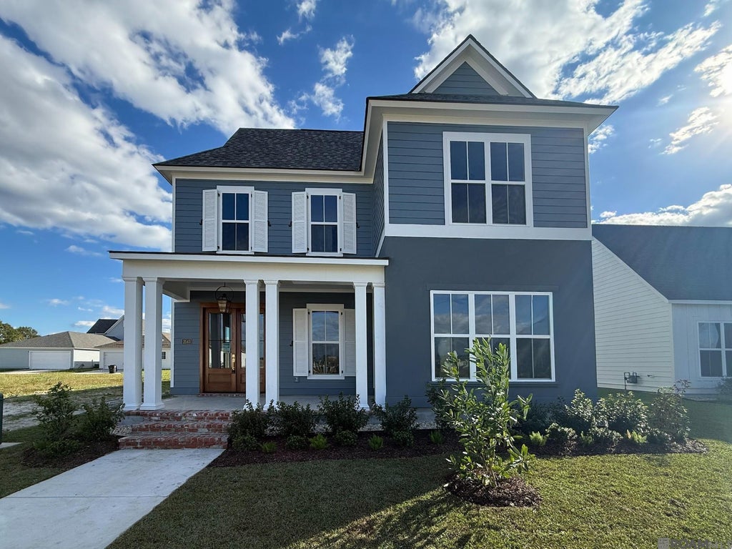 The Vermillion by Level Homes ready now in the Water’s Edge section of Lexington Estates! The Vermillion is a thoughtfully designed two-story home offering 4 bedrooms, 3 full baths and a spacious loft. You will enter this home off the very inviting front porch with a hanging gas lantern into the open living space. The living room, dining and kitchen are all open with views of the front streetscape and covered front porch. The kitchen is separated from the living/dining by an exposed stained beam and the large, covered side patio that brings in a ton of natural light. The gourmet kitchen features custom painted cabinets with extended uppers, 5” hardware pulls and under cabinet lighting, a large center island with overhanging aged brass pendant lights, a white 30” single basin farm sink, Calacatta Sierra quartz countertops, glossy white subway tile backsplash, stainless appliance package including a 36” gas cooktop, single wall oven and built in microwave and a huge walk-in pantry! The master bedroom is located downstairs at the front of the home with a spa-like bathroom featuring dual vanities, quartz countertops, custom framed mirrors, separate rectangular soaking tub with a quartz surround, custom built tiled shower with a seamless glass enclosure and huge walk-in closet. An additional bedroom and full bath are located downstairs. Upstairs will feature a very nice sized loft area with two bedrooms and a hall bath with dual sinks. The yard is professionally landscaped and fully sodded! HOME IS READY NOW!! The Water's Edge filing of Lexington Estates is gated and Level Homes has 18 different floorplans to choose from with a mixture of front load garages and alley loaded garages. Other lots/plans available.