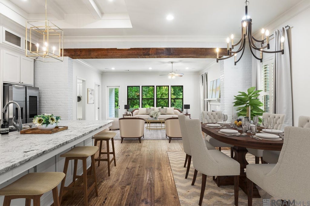 MOVE IN READY! UPDATED! REFINISHED WOOD FLOORS-REPLACE CARPET- INTERIOR PAINTED -GRILL PRO CLEAN GRILL-GAS LANTERN REPAIR- REPLACED 2 FOYER FIXTURES SOFT WASH-PAINTING EXTERIOR REPLACE SHUTTERS. This open-concept home combines comfort and elegance with interior brick accents and exposed cypress beams. The chef’s kitchen impresses with double ovens, a coffered ceiling, ceiling-height cabinetry, leathered granite countertops, a large island, and a split floor plan, providing flexibility for family, guests, or office space. The private primary suite features a spa-like bath with a soaking tub, dual vanities, a glass shower, and a custom closet. Enjoy a whole-house generator and a backyard backing to wooded greenspace—perfect for relaxing or entertaining. The Preserve at Harveston offers resort-style amenities, including a clubhouse, pool, trails, lakes, a playground, and year-round activities.