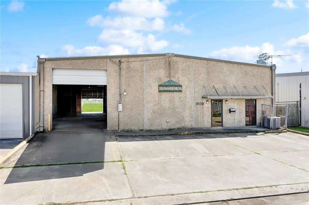 Solid construction office/warehouse next to the airport, overhead hurricane rated doors on both sides to allow driving through building, office space has 3 private offices, reception, 2 baths, upstairs mezzinine/office is included in total square footage
